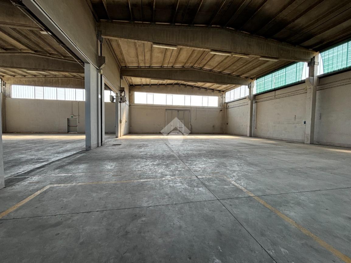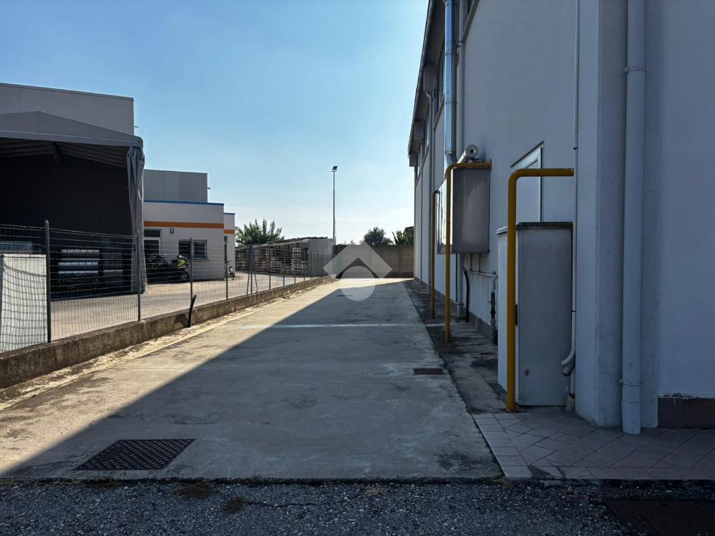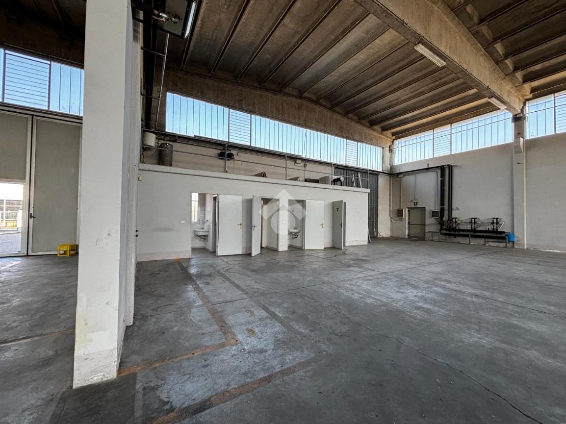 Il capannone è collegato internamente a uno spazio uso ufficio/appartamento, composto da quattro ambienti e due bagni. La separazione tra i due ambienti è garantita da una porta tagliafuoco, a tutela della sicurezza e della conformità normativa.