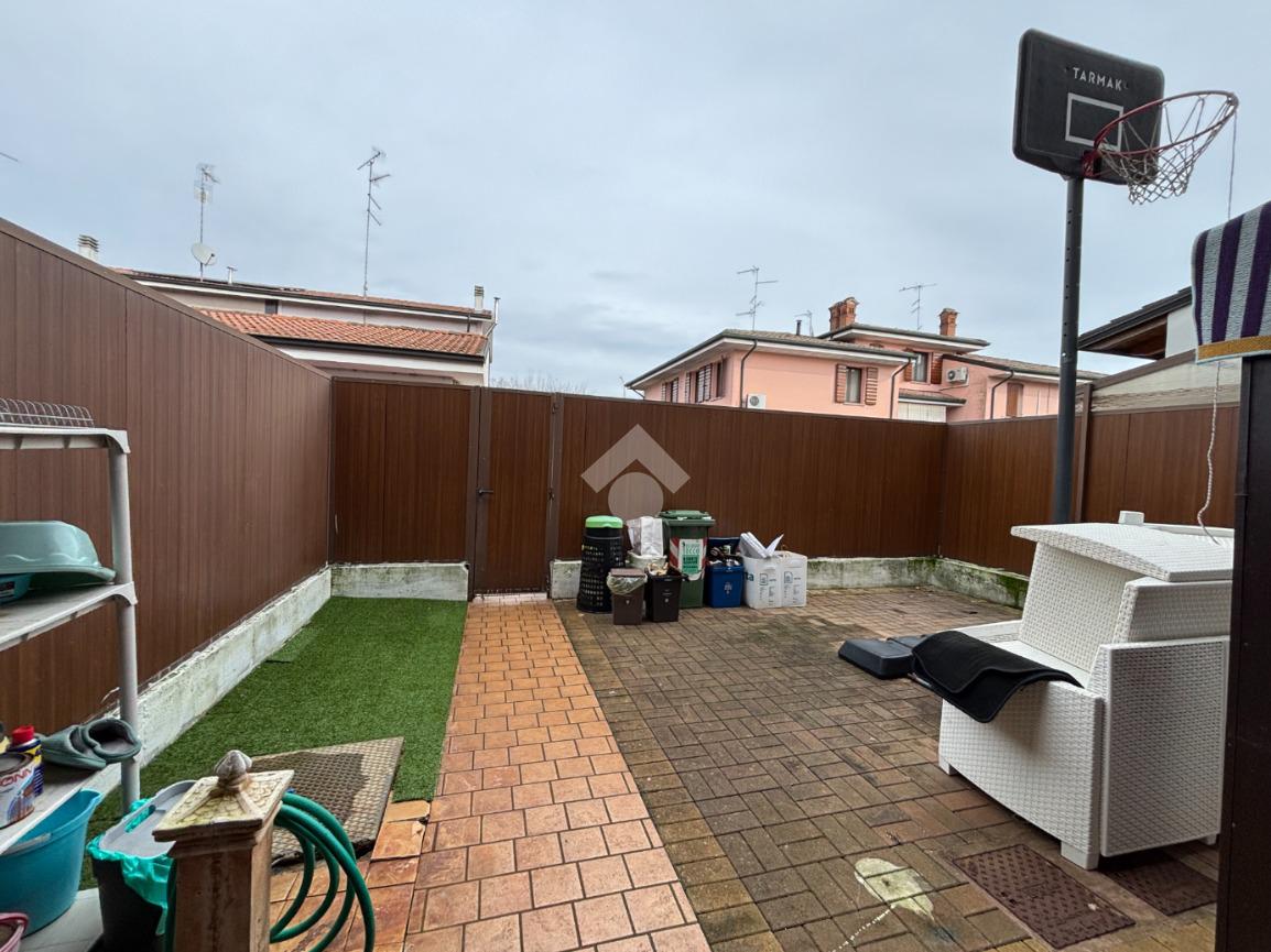 PEGOGNAGA: in zona centrale e comoda a tutti i principali servizi, proponiamo in vendita villa a schiera centrale, libera su due lati. Internamente così disposta: ingresso soggiorno, cucina separata abitabile e un primo servizio con lavanderia al piano terra. Tramite la scala interna presente in soggiorno, si accede alla zona notte posta al piano rialzato, che presenta due camere da letto matrimoniali, un secondo servizio e un ripostiglio attualmente adibito a cameretta/studio. Completano la soluzione il box e il giardino di pertinenza.