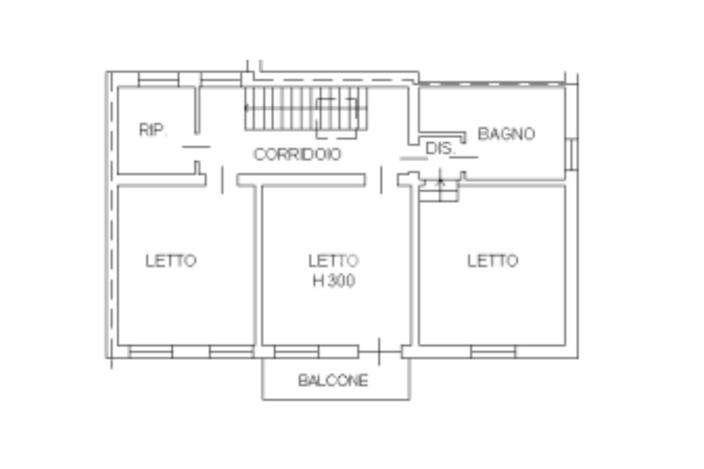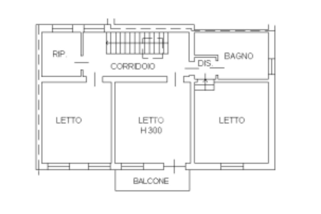 Una comoda scala interna conduce al piano primo dove si sviluppa la zona notte composta da ripostiglio, bagno con vasca e tre camere da letto matrimoniali, di cui una con accesso al balcone.